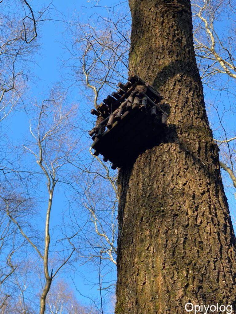 木の上のほうをよく見ると、小さなバルコニーが付いていました。ドアの向こうはどんな造りになっているのだろうか・・と想像が掻き立てられます。笑