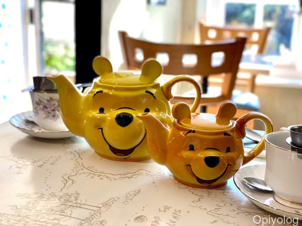 紅茶は可愛らしいプーさんのポットで提供されます。