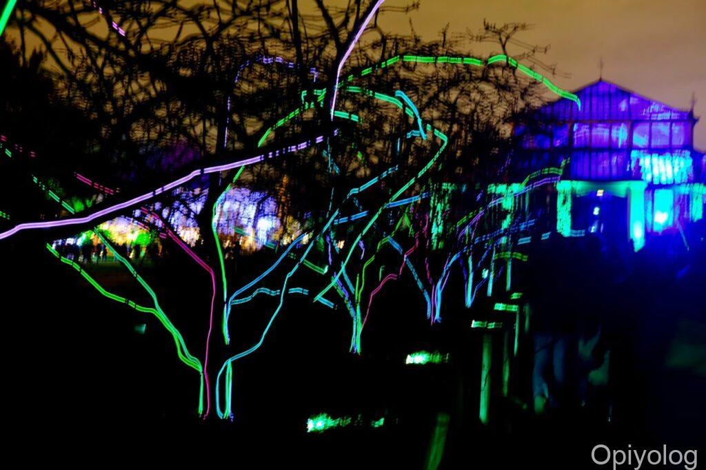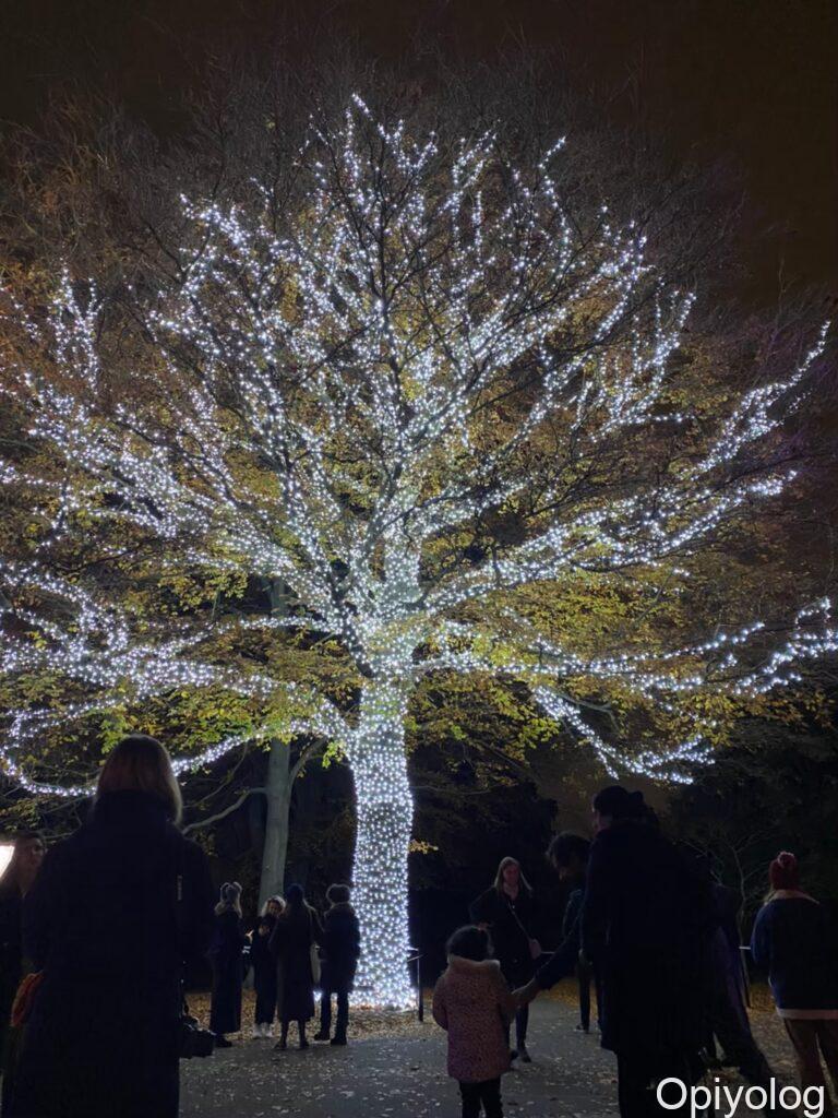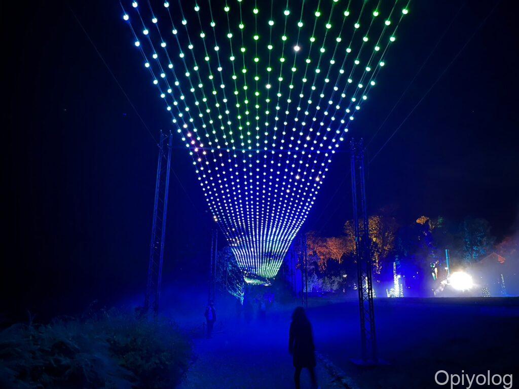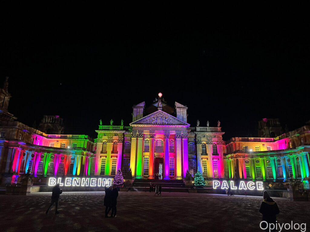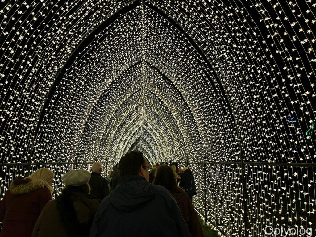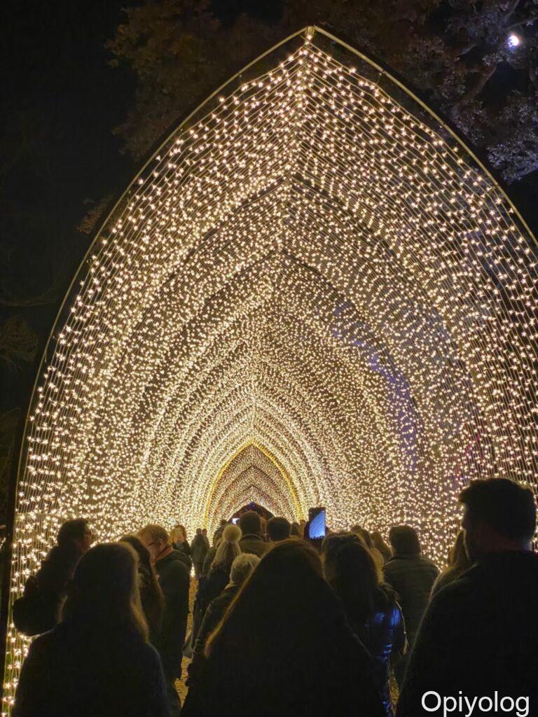 光のトンネルやオーロラのようなイルミネーションはブレナム宮殿と同じような構成です。