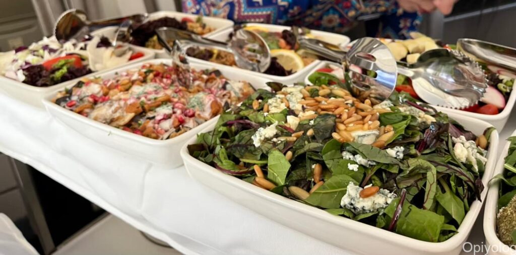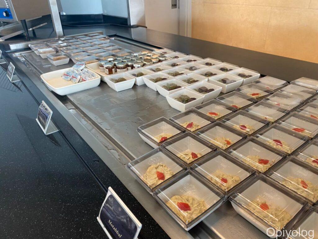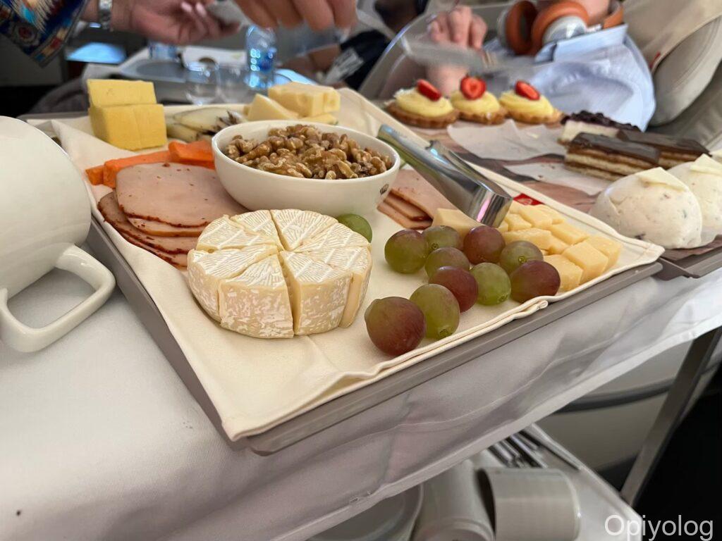好きなメニューを複数選ぶことができます。客室乗務員がワゴンで運んでくるので、欲しい前菜を指差せばOKです!こんなワゴンスタイルでサーブされたのは初めてだったので、かなり新鮮でした!