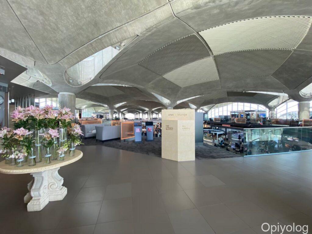 建物の二階部分がラウンジになっているような構造で、下の免税ショップやカフェがラウンジから見えます。