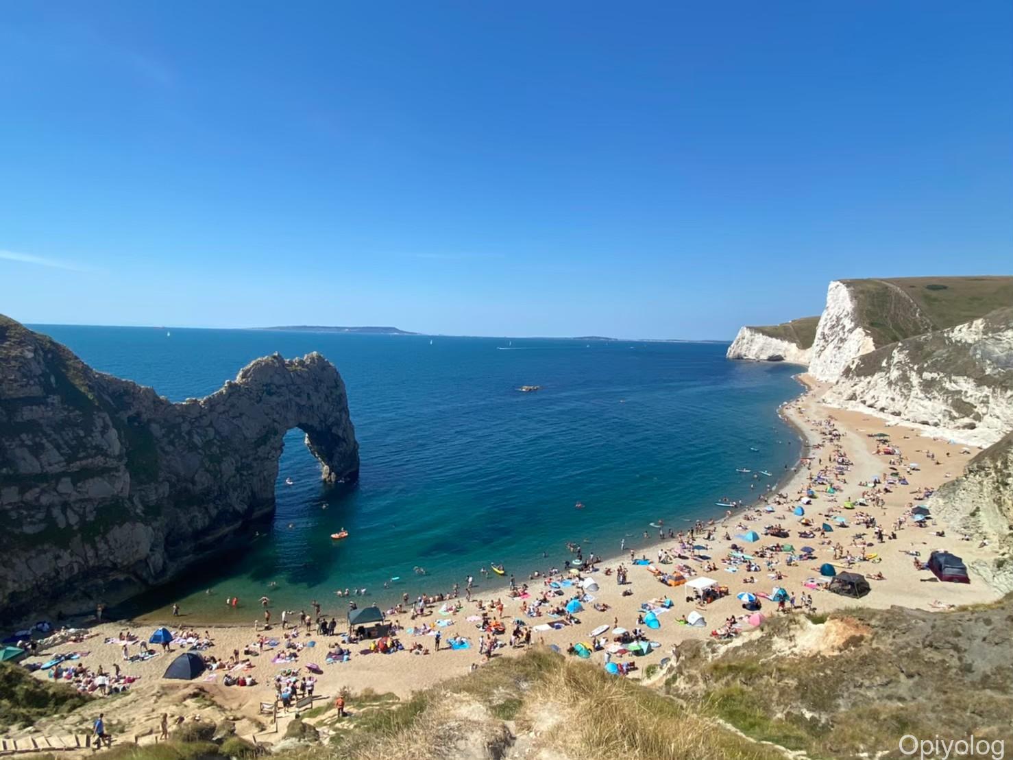 化石掘りで有名なジュラシックコーストですが、夏はビーチは多くの海水浴客で賑わいます!この海の青さは夏の日差しがないとなかなか見られない光景です。